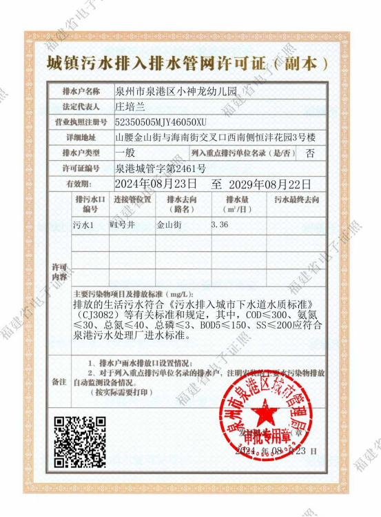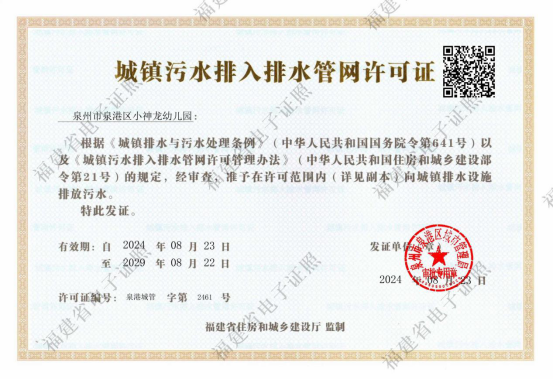 【结果公开】(市政服务)城镇污水排入排水管网许可证(泉港城管字第2461号)