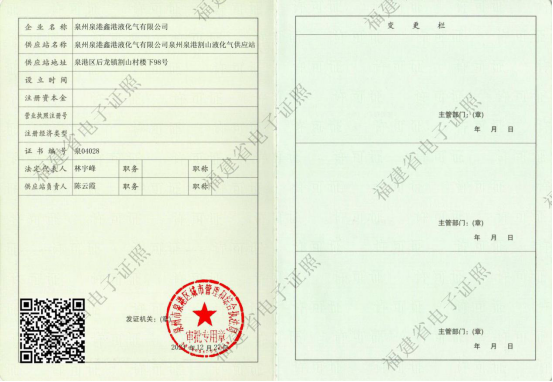 福建省瓶装燃气供应许可证(泉04028)
