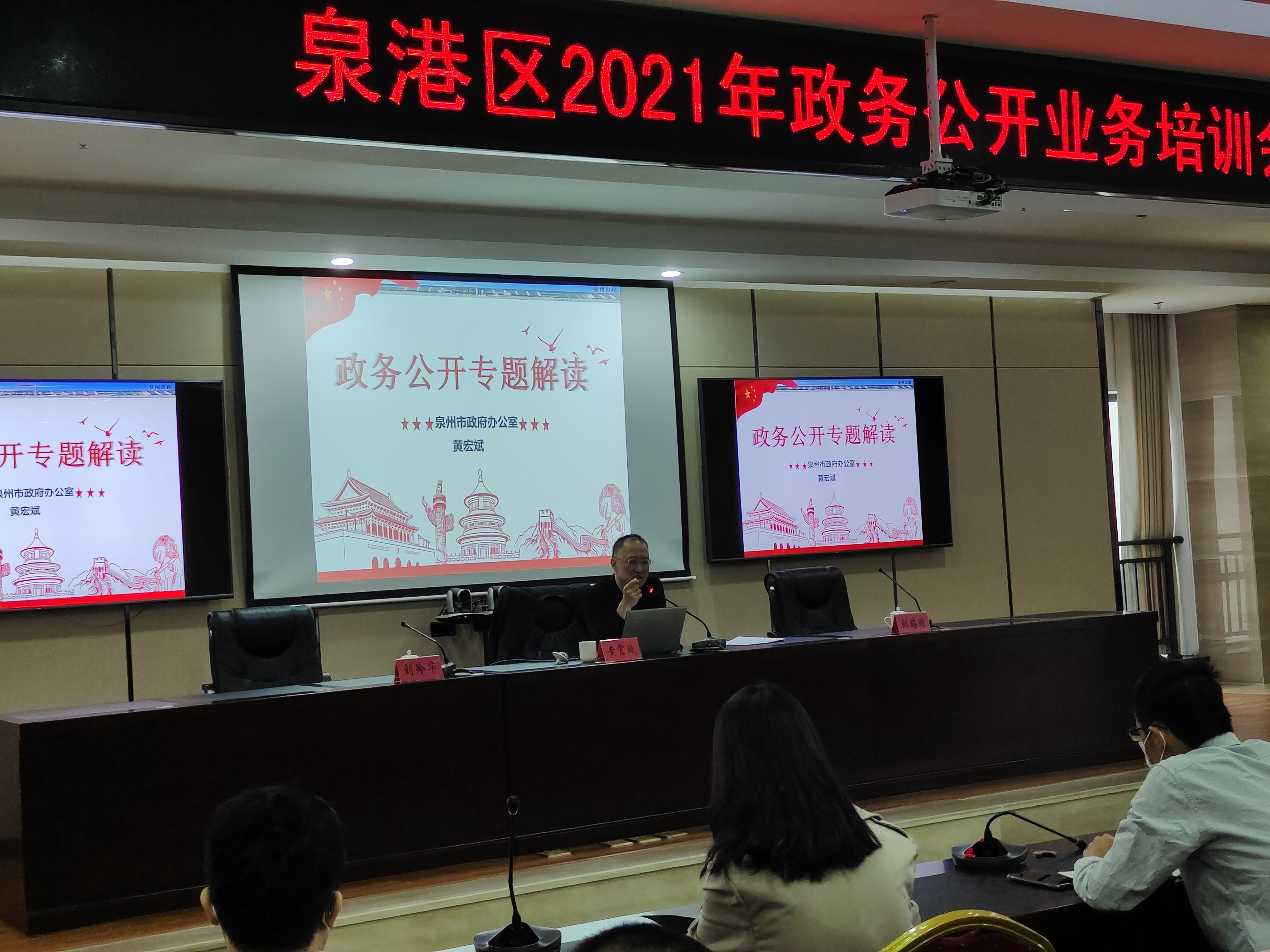 2021年11月16日,伟德国际 政府举行2021年度政务公开业务培训会,邀请泉州市政府办信息公开办负责人黄宏斌同志授课。