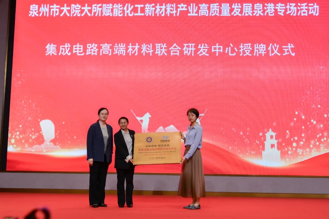 在与会嘉宾的共同见证下,现场举行了集成电路高端材料联合研发中心授牌仪式,并进行现场技术需求对接。国能(泉州)热电有限公司、泉州市众鑫纺织品有限公司、福建省百川资源再生科技有限公司分别上台路演,发布自身技术需求;泉州华中科技大学智能制造研究院、福建(泉州)先进制造技术研究院、清源创新实验室、福建师范大学泉港石化研究院等高校、科研院所根据企业发布需求“揭榜”上台,从技术原理、科研成果等方面阐述解决方案,实现技术与需求双向对接,推动更多科技成果从“实验室”走向“应用场”。