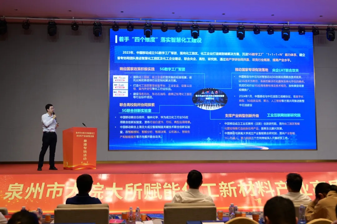 在经验分享环节,清源创新实验室介绍院所改制经验,福建纯铭新材料科技有限公司介绍分享产业化落地经验。在主题报告上,泉州能源发展集团有限公司、中国移动通信集团上海研究院分别以《“国企+院所+基金”赋能院所产业化改制》和《智慧化工园区整体解决方案》为题作专题报告。